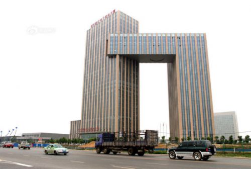 “大裤衩”的模仿者:2014年5月19日,河南省郑州商都路京港澳高速口,一建筑因外形酷似央视“大裤衩”遭围观。