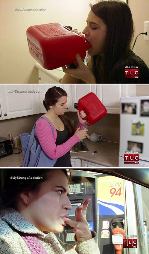 英国一名少女嗜好喝汽油,每天都要喝12匙汽油。她表示,开始喝的时候喉咙有刺痛感和灼烧感,但是还是禁不住要喝。