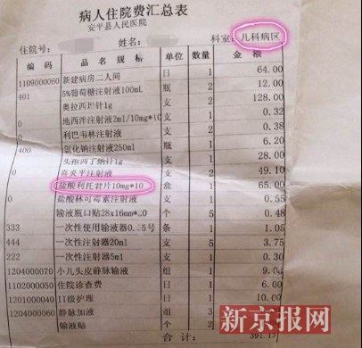 网帖称,10月10日,一名4岁小男孩的药费清单里,被发现竟然含65元一盒的保胎药(盐酸利托君片)。帖子中还附有两张图片,第一张为《安平县人民医院病人住院费汇总》,图中“儿科病区”和“盐酸利托君片”的字样被标注出,盐酸利托君片即发帖人所称的“保胎药”,规格为10mg*10,标价65元一盒。另一张附图则为盐酸利托君片的百度百科释义,用途分类为抗早产药及适应症为预防妊娠20周以后的早产。
