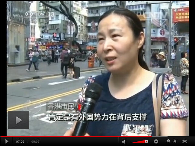 原标题:香港市民含泪谴责外部势力支持“占中” 2天给2500港币