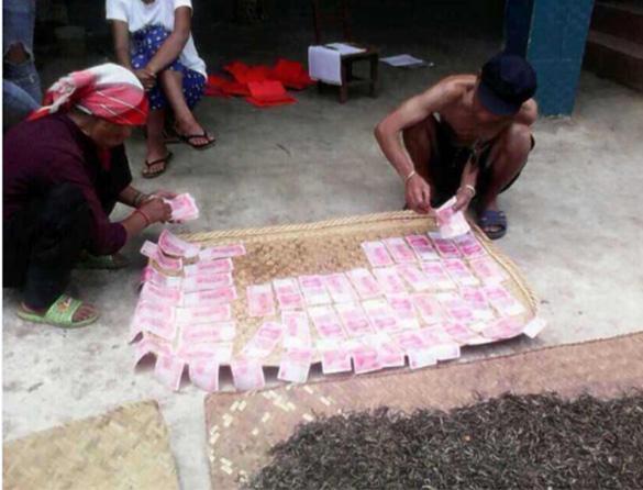 云南勐海县勐混镇邦盆村村民们不愿把钱存在银行,纸币遇潮遇雨变得潮湿,晴天时就会有村民在院子里晒钱。