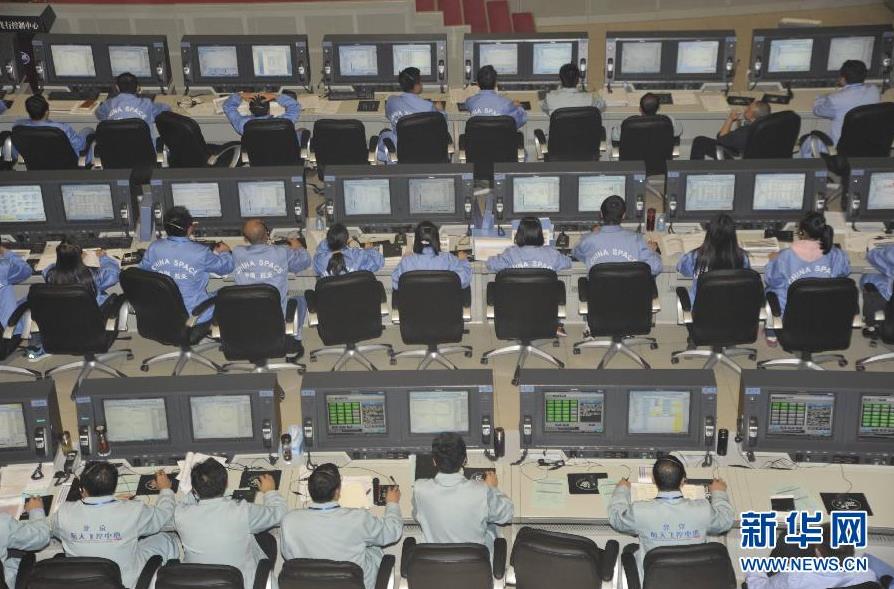 10月24日,北京航天飞行控制中心飞控大厅显示屏显示再入试验飞行器实施首次中途修正。当日16时29分,在北京航天飞行控制中心科技人员的精确控制下,再入返回飞行试验器成功实施地月转移轨道首次中途修正。 新华社记者 田兆运摄