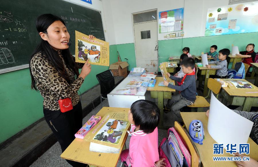新华社照片,霸州(河北),2014年10月27日 河北霸州创作新二十四孝图 10月27日,在河北省霸州市南孟镇小学,一名老师在课堂上给学生讲解《新二十四孝图》。近年来,河北省霸州市参照古代二十四孝图的表现形式,结合现代老年人的生活起居、个人情感、休闲娱乐、养生保健和社会关爱等多个角度编绘了《新二十四孝图》,并通过绘制文化墙、发放宣传画等方式,在社会中营造敬老爱老新风。新华社记者李晓果摄