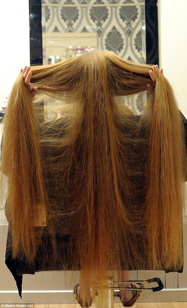 12岁美少女拥有1米多长的及膝金发。