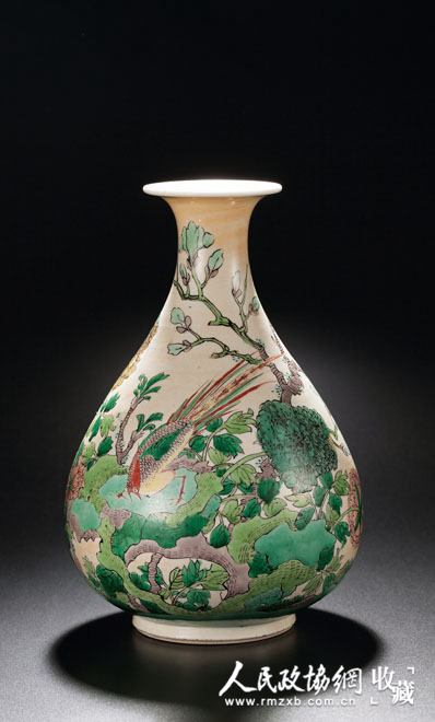 清康熙 米黄釉五彩玉堂富贵玉壶春