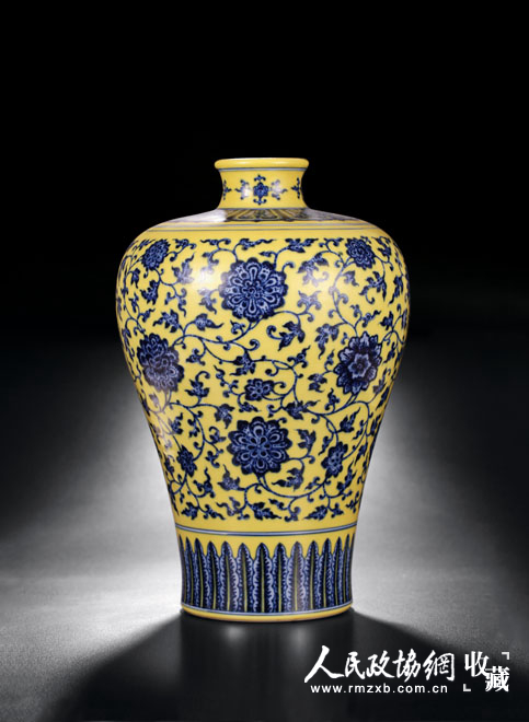 清乾隆 黄地青花缠枝花卉梅瓶
