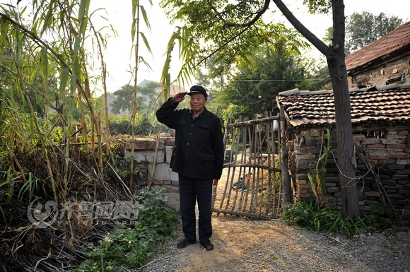 送别记者离开乡下小院时,老兵徐钦林敬了一个标准的军礼(齐鲁网发 刘畅 摄)