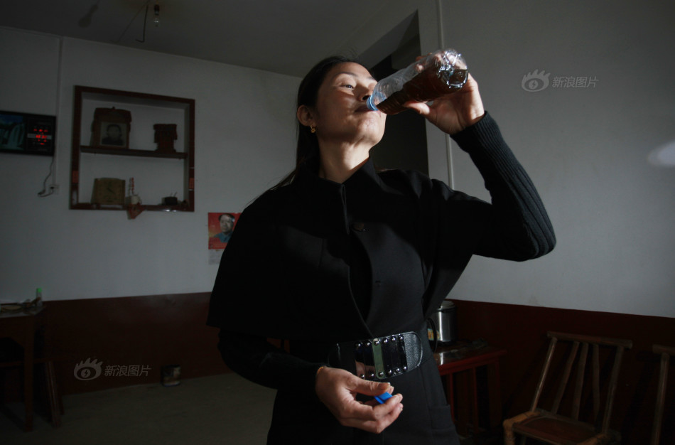 近日,湖南省湘潭县中路铺镇金石村村民流行用牛羊粪便干燥磨粉后泡水喝,称“可防治疑难杂症”。图为10月29日,村民邓女士正在服用“粪疗药水”,她称自己服用两个月后妇科疾病改善了很多。摄影:周强