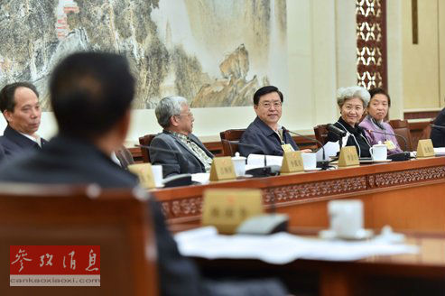 10月28日,十二届全国人大常委会第十一次会议在北京举行分组会议,审议反间谍法草案二审稿,审议全国人大常委会关于民法通则第九十九条第一款、婚姻法第二十二条的解释草案。张德江委员长参加审议。 新华社记者 李涛 摄