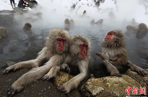 猴子冬日享受露天温泉