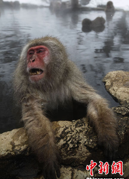 不能更惬意:日本猴子边泡温泉边玩手机 表情专注(图)
