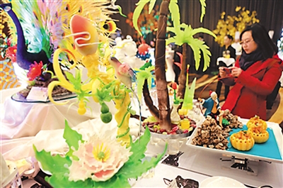 APEC会议中心摆放的各类糖塑。(新京报记者 秦 斌摄)