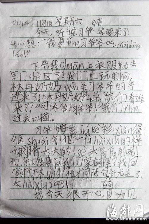 关键词:习爷爷你好害羞 福州7岁女孩日记