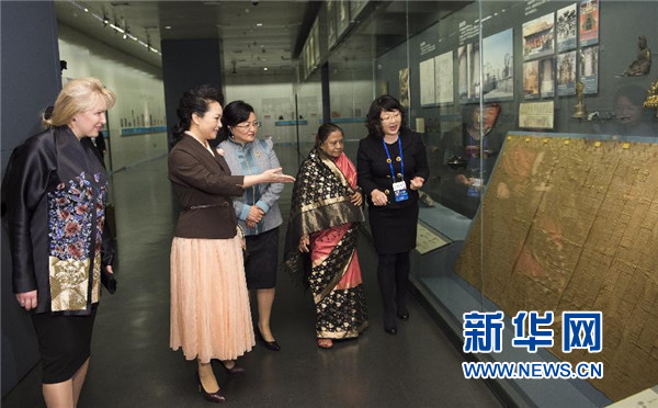 彭丽媛邀请出席加强互联互通伙伴关系对话会的部分外方政要夫人参观首都博物馆