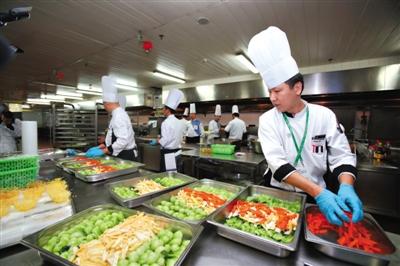 8日,北京国家会议中心迎来APEC会议用餐最高峰,厨师们在后厨加紧准备。为迎接各经济体领导人及代表,北京作为东道主在饮食方面做了精心准备。 新京报记者 侯少卿 摄