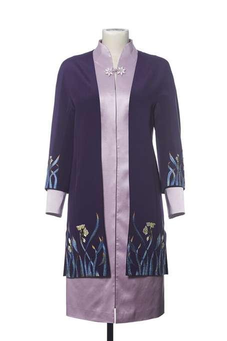 女配偶为开襟、连肩袖外套,内搭立领旗袍裙。