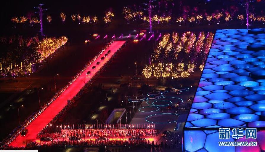 11月10日晚,出席亚太经合组织领导人非正式会议的经济体领导人和代表车队抵达北京国家游泳中心“水立方”。当晚,2014年APEC领导人欢迎宴会在北京国家游泳中心“水立方”举行。 新华社记者 金立旺 摄3
