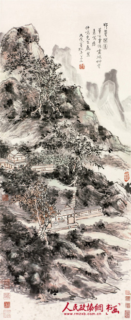 黄宾虹 挹翠阁图 设色纸本 立轴105×46cm