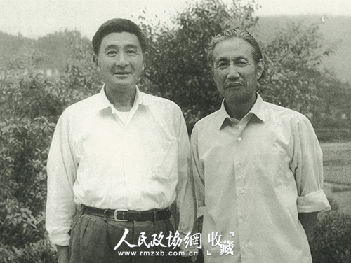 陆俨少(右)与赵丹在井冈山