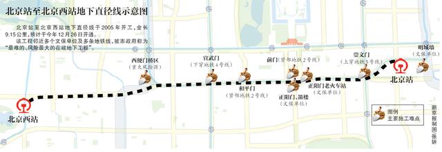 经过历时9年的建设,北京站至北京西站地下直径线终于将在年底通车运营。北京市住建委昨日发布,北京站至北京西站地下直径线计划在今年12月26日开通运营。届时将直接连接北京站和北京西站两大客运枢纽,实现火车地下穿行。