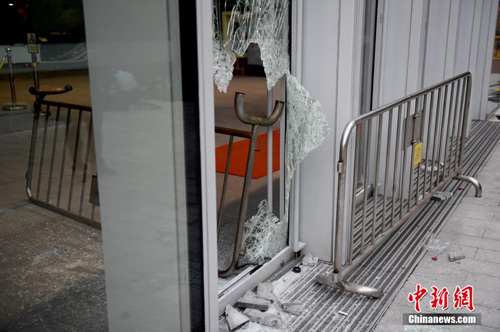 据香港特别行政区政府网站消息,事发于凌晨1时,示威者用铁马(障碍物)和砖块,多次猛烈冲击大楼。大楼多处玻璃门碎裂,砖墙被撬毁。