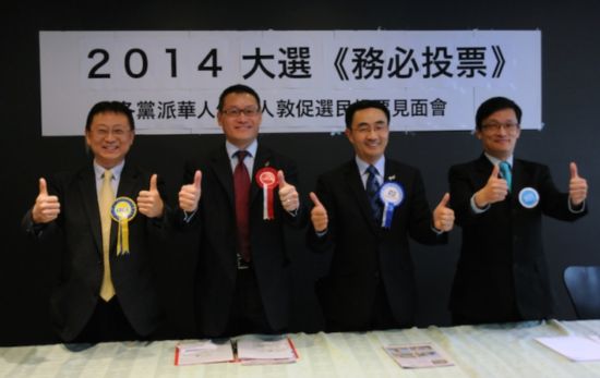 (资料图片:新西兰华人竞选2014年国会议员,右二为杨健。新华社记者田野摄)