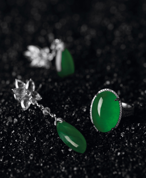 翡翠耳饰、戒指套装