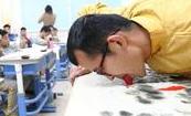 11月19日,浙江省杭州市,民间奇人韩晓明用舌头代替画笔作画,在近一个小时时间内,韩晓明完成了一幅荷塘月色的画作。当天,一家来自德国的电视台也赶到杭州拍摄下韩晓明的绝技。