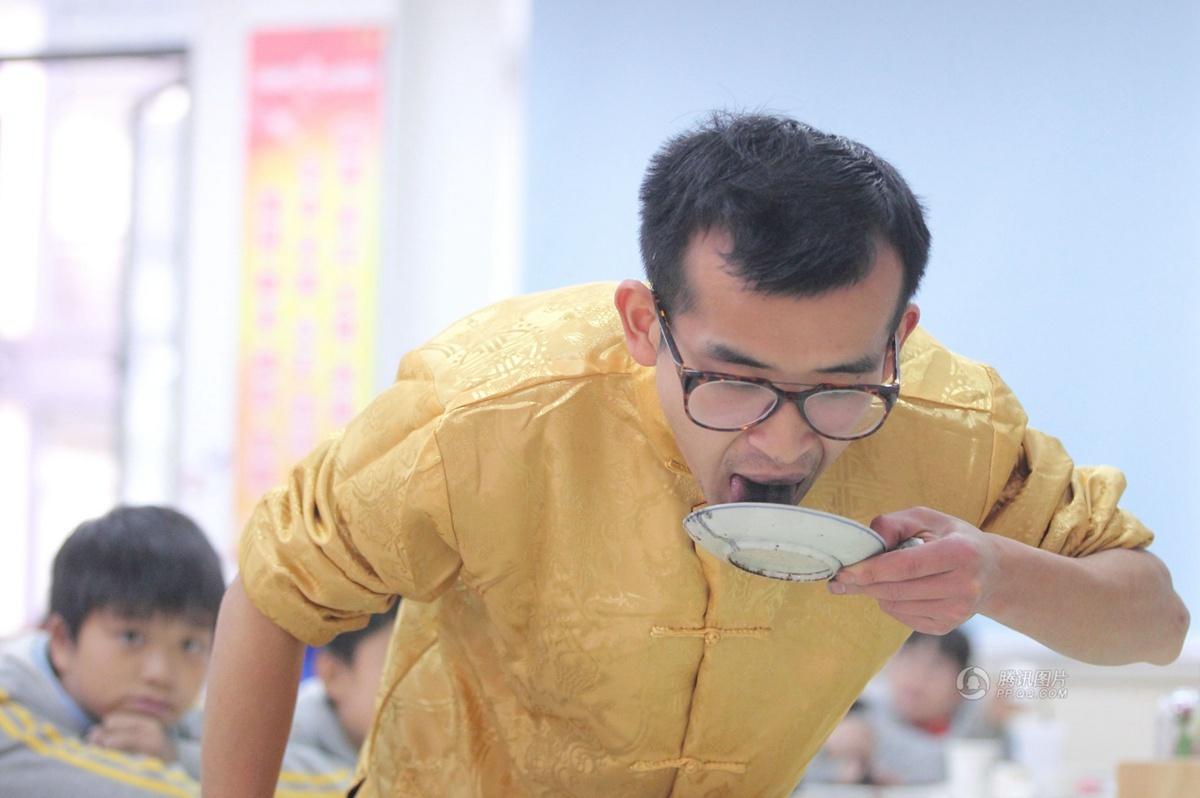 工艺美术大师韩晓明拥有一项绝技,就是用舌头作画,近来在杭州表演多场,受到国内外媒体的关注。