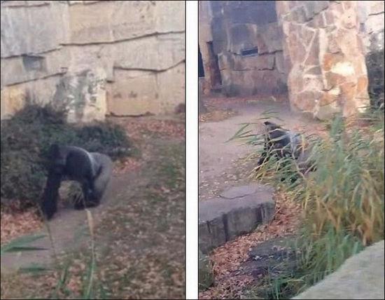 这只大猩猩当时正在围栏中遛弯,在其隐入树丛后,游客们想要更近距离观察它。(网页截图)