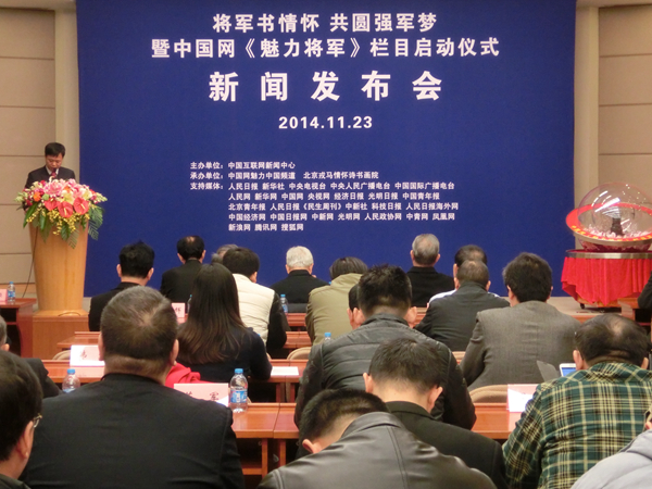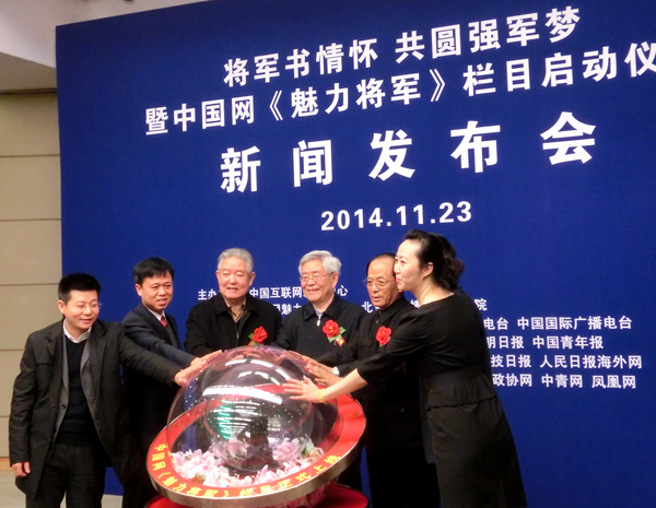 中国网《魅力将军》大型栏目启动仪式日前在国务院新闻办举行。据介绍,此栏目是汇集将军资讯、诗词、书法、绘画、摄影于一体的播出平台。