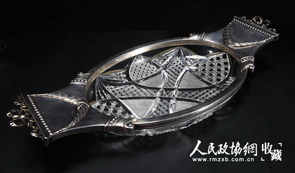 俄罗斯银边大水晶盘 个体硕大,水晶雕刻纹饰线条流畅优美精细,凸现俄罗斯艺术风格。_副本