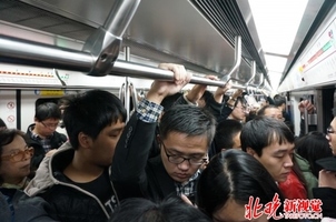 资料图:地铁上拥挤的乘客。