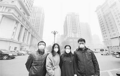 近日,哈尔滨城区遭遇严重雾霾,污染指数一度爆表。图为街头佩戴口罩的几位市民。新华社记者 王 松摄