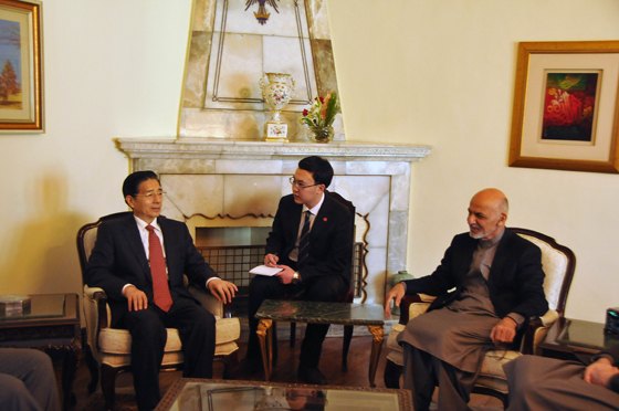 11月30日,阿富汗总统加尼在首都喀布尔会见到访的中国国务委员郭声琨。
