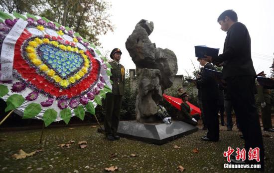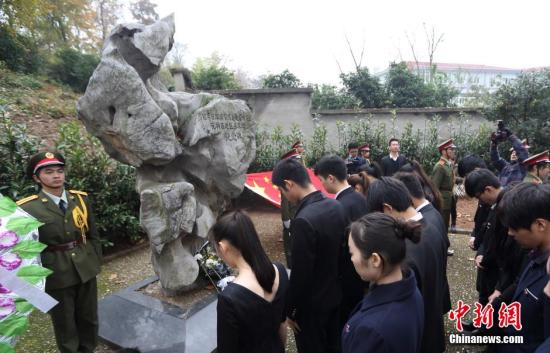 11月29日,来自南京航空航天大学金城学院的近百名大学生来到侵华日军南京大屠杀遇难同胞花神庙地区丛葬地,手捧他们用萝卜刻出来的长明灯,向遇难同胞默哀静思,并朗诵爱国诗歌,以此来牢记历史、勿忘国耻。侵华日军南京大屠杀遇难同胞花神庙地区丛葬地位于南京雨花台区花神大道旁边,纪念碑由一块巨石做成,一段“自1938年1月至2月的40余日内,共掩埋了中国军民尸体7000余具……”的碑文述说了那段惨痛历史。中新社发 泱波 摄