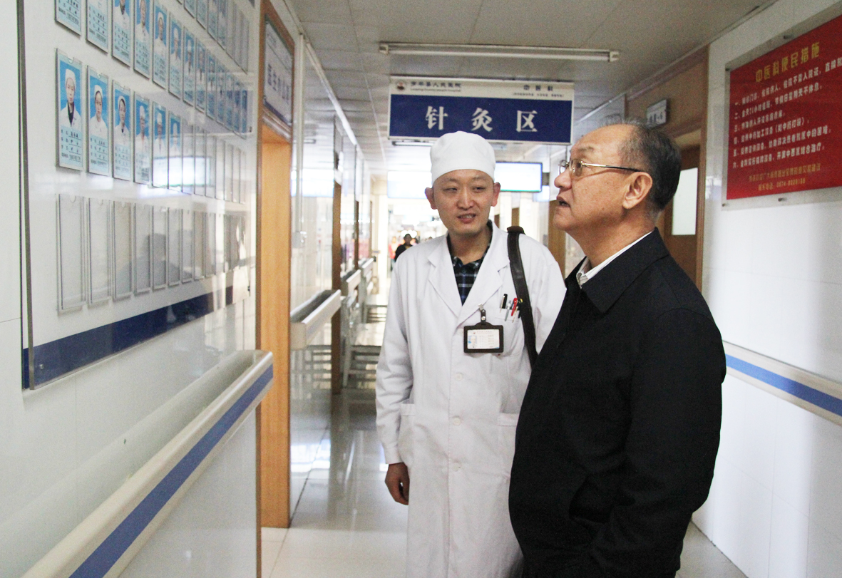 全国政协委员、中国中医科学院广安门医院院长王阶参观罗平县人民医院中医科。
