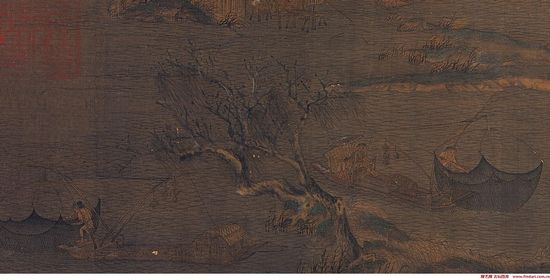 台北故宫博物院藏南唐赵干《江行初雪图》(局部)