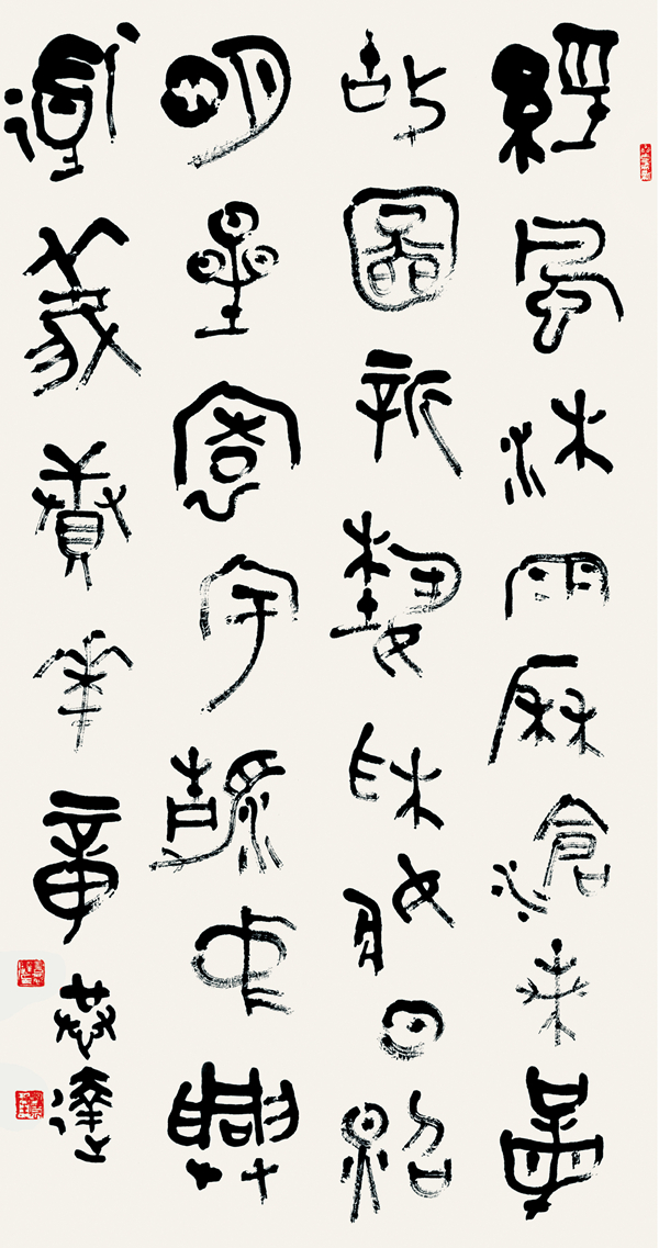 我们呼唤时代经典,呼唤审美的崇高,也呼唤艺术包容。以对当今主流文化的命运思考,来关注自己的生存空间。中国书法30多年来的发展核心是重建书法现代人文精神,这是当代书法艺术家必须具备的一种品格、一种情怀。我以为,艺术的本体价值与社会价值的有机统一是一种时代精神,是对客体的升华与超越。当今书坛呼唤现代人文关怀!看重文化品格的铸造!
