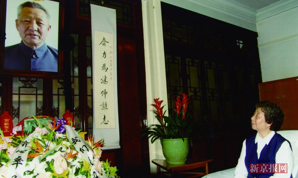 2005年5月,齐心在北京家中端祥习仲勋遗像。