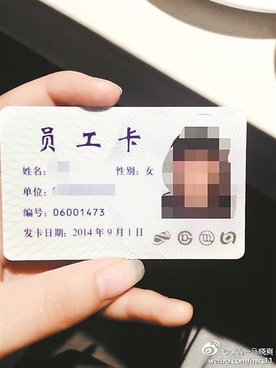 图为地铁工作人员的员工卡