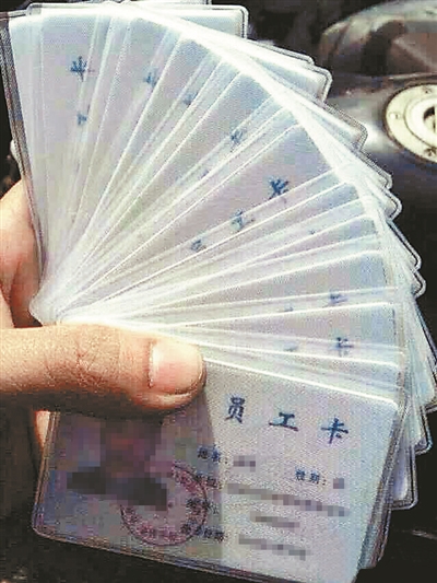 “4600元”,该人称员工卡4600元一张,她解释说,员工卡之所以昂贵是因为终身使用,如果一次性购买10张以上可以优惠。如何才能买到这种员工卡?她说,购买者要交两张身份证正反面复印件,两张一寸白底免冠照片。一到两周就可以拿到照片为购买者本人的卡片。她表示,收到购买者的资料后,购买者要全款支付费用,费用可以打到支付宝或者银行卡内,交易可当面进行。购买者如何信任这种先付款后交货的交易方式?该人称,“你可以不办。”