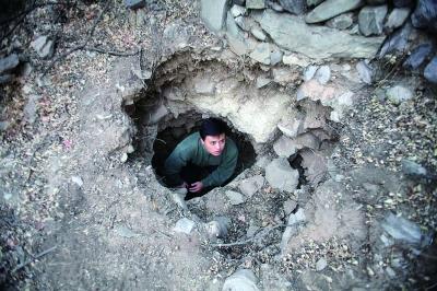 记者看到,这些盗洞深浅不一,深的可达3米,浅坑1米多深,洞口正好可以钻进去一个人。
