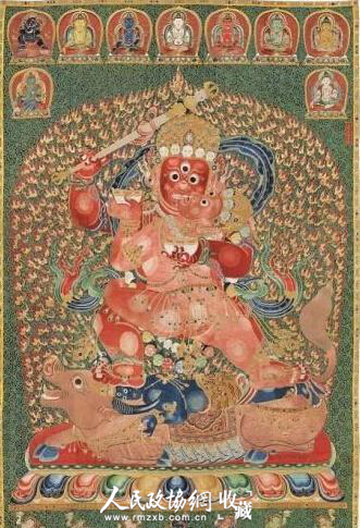 永乐御制红阎摩敌刺绣唐卡