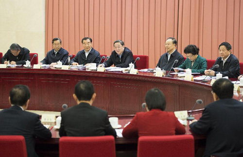 12月12日,全国政协在北京召开双周协商座谈会,就“城镇化进程中传统村落?;ぁ蔽侍馓岢鲆饧徒ㄒ?。全国政协主席俞正声主持会议并讲话。新华社记者黄敬文摄