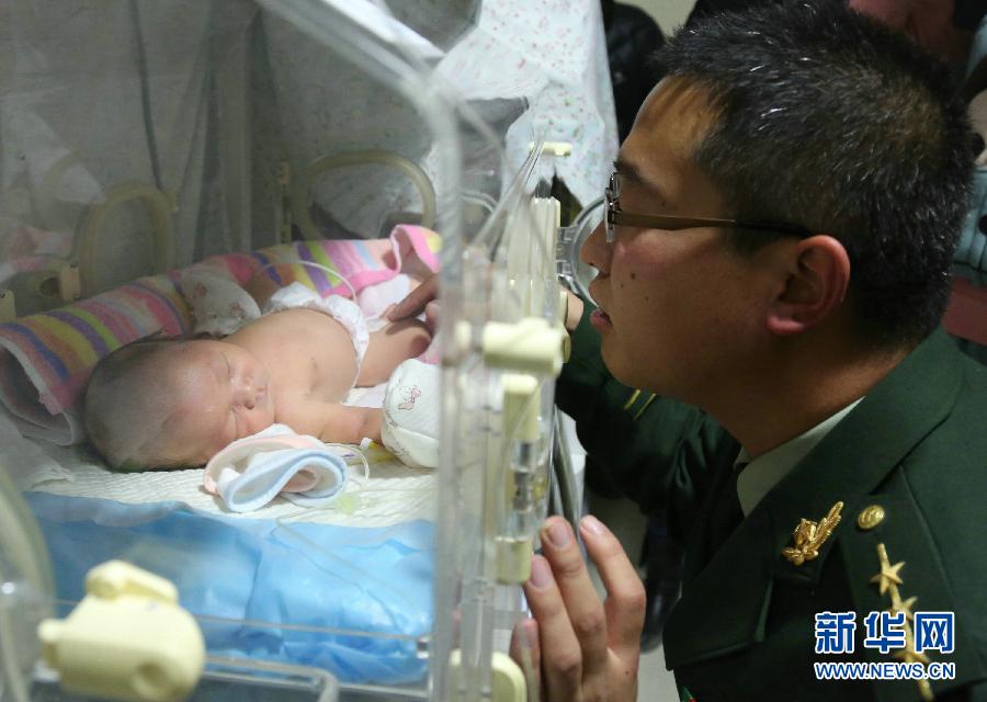 “呐喊哥”李治探望女婴(12月11日摄)。寒冬时节,陕西省绥德县一名刚出生的女婴被遗弃在公厕粪坑里,生命垂危。而这原本微弱的生命,被消防战士救起。 “娃不要睡”“孩子坚持住”,在疾速行驶的消防车中,消防战士怀抱婴儿轻声呼唤…… “所有车辆让开”“靠边停车”,在生死时速的送医路上,消防战士连续呐喊! 生命的呼唤,在闹市辟出一条绿色通道…… 这段视频传到网上,人们纷纷为“呐喊哥”点赞。 新华社发 (王瑞平 摄)