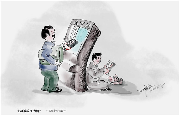 通过“看骗子能骗走多少钱”的方式来哀求公权力出手相助,这或许是骗子们的福音,但却是法治社会的一曲悲歌。 本报记者田福良作