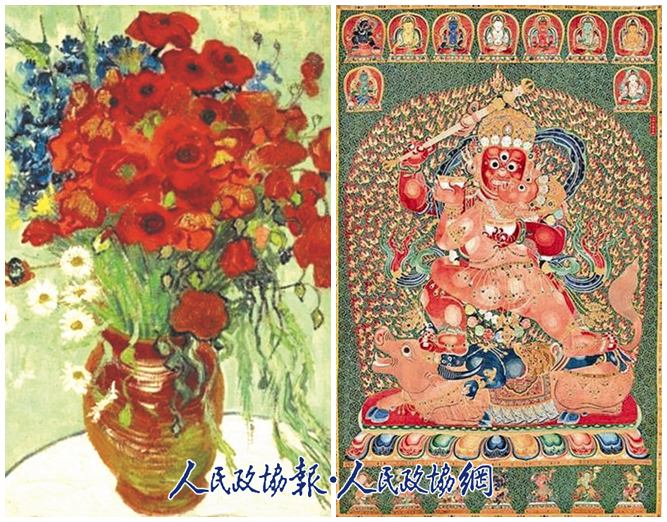 《雏菊和罂粟花》和《永乐御制红阎摩敌刺绣唐卡》