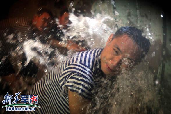 一声巨响过后,暴起的海水最先喷到轮机兵朱召伟的脸上。“就像沙粒打在脸上一样。”海水在数十个大气压的作用下形成一股铺天盖地的水雾,向四面喷射。若在陆地上,这样的压力可以将水喷到上百米高的大楼。