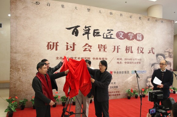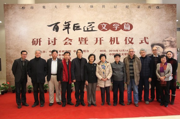 2014年12月14日下午,百集大型人物传记纪录片《百年巨匠》文学篇研讨会暨开机仪式在中国现代文学馆举行,中国作家协会副主席、著名作家何建明,中国话剧历史与理论研究会会长、原中国艺术研究院话剧所所长田本相,老舍研究学会名誉会长兼学术委员会主任吴小美,原中国现代文学馆副馆长吴?;?,中国人民大学文学院院长孙郁,老舍研究学会会长关纪新,郭沫若女儿、原郭沫若纪念馆馆长郭平英,郭沫若纪念馆原副馆长郭晓虹,《百年巨匠》战略合作伙伴、中国民生银行社会责任管理委员会代表单宇红,《百年巨匠》出品人、总策划杨京岛,中央电视台高级编辑、《百年巨匠》文学篇总导演肖同庆出席研讨会和开机仪式。中国现代文学馆馆长吴义勤主持仪式。
